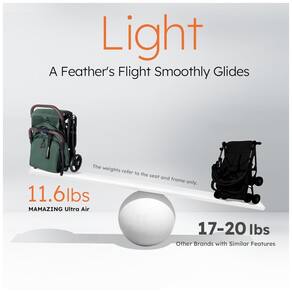 Diga adeus aos carrinhos volumosos que tornam as viagens uma dor de cabeça. O carrinho de bebê da MAMAZING possui um design compacto que se dobra facilmente para um tamanho reduzido. Com apenas 5,2 kg, graças à sua estrutura avançada de fibra de carbono, garante uma experiência sem complicações onde quer que você vá. Este material inovador não só oferece durabilidade excepcional, como também permite uma construção incrivelmente leve, facilitando o armazenamento em porta-malas ou compartimentos de bagagem em aviões. O sistema de dobra e desdobra é amigável para o usuário, sem mecanismos complexos, facilitando a transição do passeio para o armazenamento. Proteção solar e conforto são prioridades. O Carrinho Ultra Air possui um toldo com proteção UV que protege seu pequeno dos raios solares nocivos, proporcionando um refúgio fresco e sombreado para relaxar. O toldo ajustável com proteção UPF 50 pode ser facilmente posicionado para diferentes ângulos de sol, permitindo criar o local sombreado perfeito enquanto explora locais ao ar livre. Com amplo espaço de armazenamento, incluindo uma cesta espaçosa sob o assento, este carrinho compacto para crianças pequenas pode acomodar facilmente fraldas, brinquedos, lanches e muito mais. Priorizando a segurança do seu filho, apresenta um arnês de 5 pontos e sistema de freio acionado pelo pé. Adequado para bebês a partir de 6 meses até 22,7 kg e altura máxima de 100 cm. Atende ou excede os mais altos padrões de segurança estabelecidos pela CPSC e ASTM.