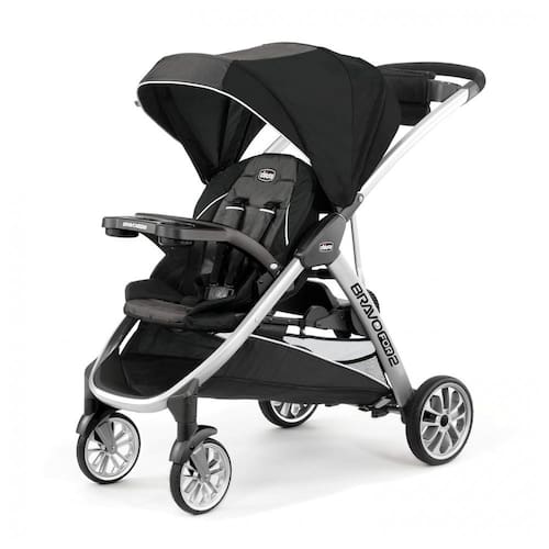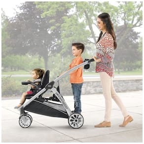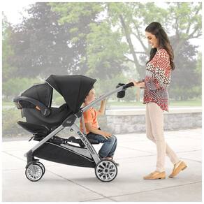 Para crianças mais novas, o carrinho duplo Chicco BravoFor2 possui um assento tradicional acolchoado, cinto de cinco pontos, dossel grande e ajustável e bandeja removível com dois suportes de copo. Para os bebês, o assento do carrinho se dobra para a frente para aceitar uma cadeirinha infantil Chicco Key Fit ou Fit2 com fácil acesso de clique. Vendido separadamente para irmãos mais velhos, o BravoFor2 é equipado com um banco traseiro bônus e uma plataforma onde crianças grandes podem optar por sentar ou ficar de pé. O assento se dobra facilmente Quando desocupado e inclui um arnês de três pontos para segurança. As alças de aperto fácil fornecem estabilidade adicional para o suporte e um encosto oferece suporte extra. O BravoFor2 foi projetado com uma dobra rápida ultracompacta de uma mão para facilitar a manobra e o zenamento.Uma alça integrada ativa facilmente a dobra e gira simultaneamente as rodas dianteiras para dentro para manter a unidade dobrada em pé. Depois que o carrinho é fechado, a alça da dobra também funciona como uma alça de transporte. Pneus de borracha estriados, suspensão total e giros dianteiros ajudam a manter uma viagem suave para os dois passageiros em todas as configurações. Os freios com um toque mantêm o carrinho no lugar quando estacionado. Uma alça acolchoada, uma bandeja dos pais com dois suportes para copos e uma grande cesta de zenamento com acesso frontal e traseiro proporcionam maior comodidade para mamãe ou papai.Uma alça acolchoada, uma bandeja dos pais com dois suportes para copos e uma grande cesta de zenamento com acesso frontal e traseiro proporcionam maior comodidade para mamãe ou papai. Uma alça acolchoada, uma bandeja dos pais com dois suportes para copos e uma grande cesta de zenamento com acesso frontal e traseiro proporcionam maior comodidade para mamãe ou papai.