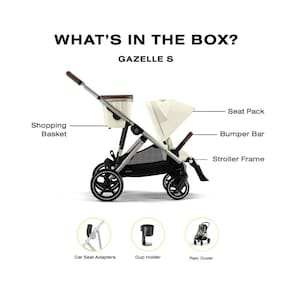 Para famílias com mais de uma criança, é possível adicionar a prancha infantil opcional vendida separadamente para acomodar até três crianças. O sistema de arnês One Pull torna fácil prender seu filho no assento com um simples puxão, sem complicações e ainda mais prático se você estiver fazendo isso duas vezes. Os ajustes independentes do encosto e das pernas do assento reclinável oferecem múltiplas configurações, permitindo que você posicione seu filho para maior conforto. Com o CYBEX Gazelle S, você tem a oportunidade de criar mais de 20 configurações usando unidades de assento Gazelle S, berços Gazelle S, assentos infantis para carro CYBEX ou o carrinho de compras removível.