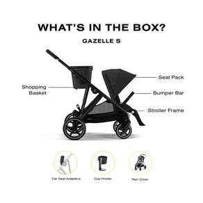 Carrinho de Bebê Duplo Modular com Mais de 20 Configurações e Inclui Cesto de Compras Removível, Cybex Gazelle S, Preto