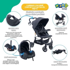 Carrinho De Bebê E Bebê Conforto Startravel Maxi Baby Preto
