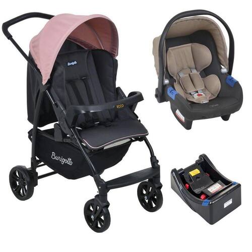 Conteúdo da Embalagem: 1 Carrinho de Bebê Ecco CZ Rosa Até 15 Kg - Burigotto 1 Bebê Conforto Touring X CZ Bege 0 à 13 Kg - Burigotto 1 Base para Bebê Conforto Touring X - Burigotto