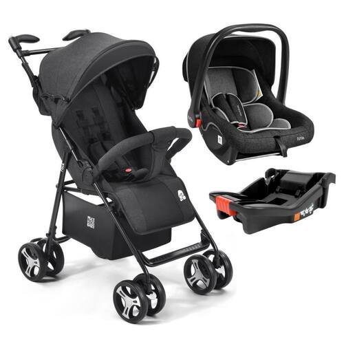 Conteúdo da embalagem: 1 carrinho 1 par de adaptadores de bebê conforto 1 bebê conforto multikids baby rest preto com cinza 0 a 13 kg 1 base para bebê conforto 0 - 13 kg preta - litet