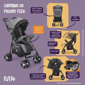 Com o Carrinho de Bebê Flick, você oferece o melhor para seu bebê e aproveita passeios mais tranquilos e confortáveis!