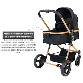 Conteúdo da Embalagem: 1 Carrinho De Bebê Moisés Galzerano Ivy Gold 1 Bebê Conforto Cocoon - Preto Cinza - Galzerano 1 Base Para Bebê Conforto Cocoon - Preto - Dzieco