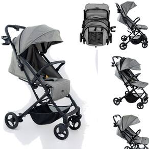 Indicação: desde o nascimento até 15 kg Estrutura em aço leve e reforçado Encosto reclinável Cinto de segurança 5 pontos com protetor de ombro Capota retrátil com visor Bandeja com porta-copos Cesto porta-objetos Rodas dianteiras giratórias Rodas traseiras com freio Tecido removível e lavável Sistema de fechamento compacto Certificado de Registro INMETRO Medidas do carrinho aberto: Altura 105 cm x Largura 55,5 cm x Comprimento 78 cm Medidas do carrinho fechado: Altura 26 cm x Largura 55,5 cm x Comprimento 69 cm Medidas da embalagem: Altura 67 cm x Largura 22 cm x Comprimento 47 cm Peso do carrinho: 7,2 kg