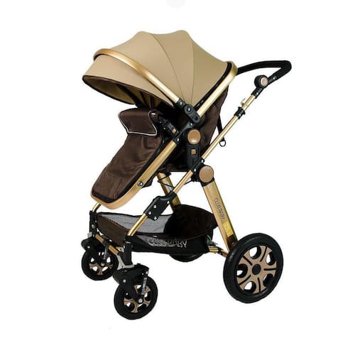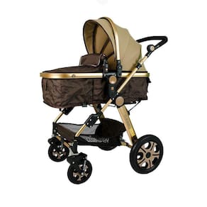 Carrinho de bebê Golden Dourado Club Baby 2 em 1Número Registro Inmetro 004400/2018Carrinho na cor marromModelo: Golden4 rodasChassi em alumínioRodas de borracha maciça, não precisa encher com arMedidas aberto 110cm de altura, 65cm de largura, 90cm de comprimentoSEGURANÇA Com o cinto de 5 pontos, você pode realizar qualquer tarefa um pouco mais distante do Carrinho Golden Dourado, sabendo que seu bebê está completamente seguro.ALÇAA alça para ajustar o carrinho é regulável para cima e para baixo, trazendo melhor dirigibilidade. Se adapta a pessoas de qualquer altura, sendo confortável para empurrar e evitando problemas de postura ou dores lombares depois de longos passeios. MOISÉSVocê pode deixar o assento totalmente reclinável em formato de berço, deixando o bebê dormir à vontade e quando precisar transportá-lo, não precisa carregar o peso, é só encaixar de novo no carrinho. O Moisés pode ser invertido de posição, sendo assim o bebê pode ser virado para trás para proteger do frio ou sol em excesso. Nosso carrinho Golden Dourado é certificado e aprovado pelo InmetroO carrinho é ideal para recém nascido, indicação de uso de 0 a 3 anos. Seu design e projeto conta com rodas traseiras largas e altas, fazendo com que o carrinho não vire com facilidade.O Carrinho Golden Dourado possui um cesto espaço na parte de baixo para guardar brinquedos até compras de mercado.