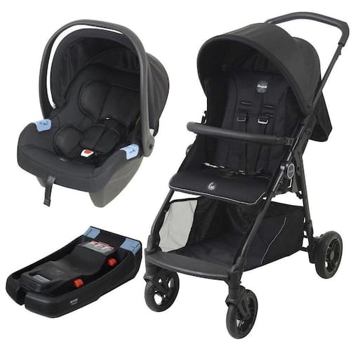 Conteúdo da Embalagem: 1 Carrinho de Bebê Lui Grafite 0 à 15 kg 1 Bebê Conforto Materna Preto 1 Base Belted para Cadeira Materna