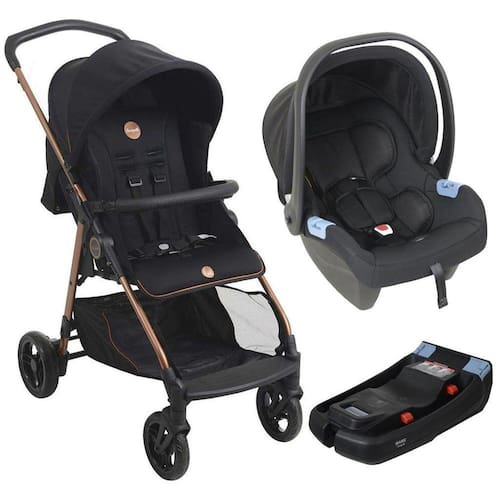 Carrinho de Bebê Lui Preto Cobre Bebê Conforto e Base Belted