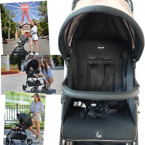 Além disso, o carrinho apresenta fechamento compacto, medindo 78 cm de altura, 55 cm de largura e 45 cm de comprimento quando fechado, facilitando o transporte e o armazenamento.