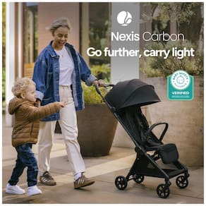 O carrinho Mompush Nexis Carbono apresenta uma estrutura em fibra de carbono de alto módulo, que alia leveza (6,3 kg) e resistência para facilitar o transporte em viagens, sendo compatível com bagageiros de aeronaves. Seu sistema de dobragem automática é acionado com apenas um toque e dobra o carrinho em 1 segundo, liberando as mãos do cuidador.