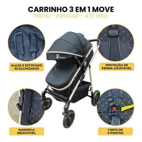 O Carrinho Move 3 em 1 é a definição de praticidade desde o primeiro dia de vida. Com design versátil, ele acompanha todas as fases do bebê: bebê conforto, moisés e carrinho, tudo em um só produto. E para completar, conta com uma capota super retrátil, ideal para proteger do sol, vento ou dar aquela espiadinha rápida no pequeno durante o passeio. Compacto, moderno e fácil de manusear, o Move foi feito pra quem quer mobilidade, conforto e estilo em todos os momentos, do café na esquina à viagem de fim de semana.