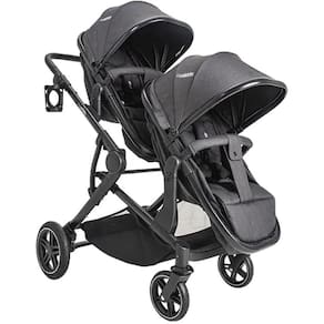 Características Técnicas: Cor predominante: grafite Carrinho, berço, passeio e moisés para 2 crianças Alças dos cabos com regulagem Acompanha saco de dormir/cobre pernas para maior proteção do frio Capotas retráteis com proteção UV FPS 50+ Assentos reversíveis que se transformam em moisés Cintos de segurança de 5 pontos Encostos reclináveis em 2 posições e assentos reclináveis em 3 ou sem os assentos Estrutura em alumínio Limite de peso: carrinho 15kg em cada assento, cestos 2 kg cada cesto