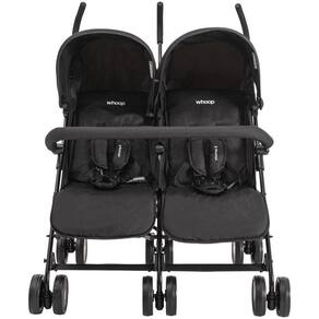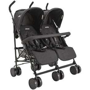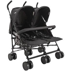 - Carrinho passeio para gêmeos e irmãos de idades diferentes. - Estrutura em aço com 2 assentos lado a lado. - Capota retrátil com visor e proteção UV FPS 50+largura reduzida para manobras estreitas. - Sistema de fechamento guarda-chuva. - Encosto reclinável em 2 posições. - Porta-copos na traseira da estrutura. - Bolsos traseiros. - Descansa braço. - Cinto de segurança de 5 pontos. - Extensão do assento articulável. - Rodas dianteiras e traseiras de 5,5 com freio. - Leve e fácil de carregar e guardar. - Para crianças a partir de 6 meses. - Limite de peso: carrinho 15 kg em cada assento. Nunca deixe a criança sozinha, sem a supervisão de um adulto. Testado e aprovado conforme norma NBR 14389 sob registro nº 000.726/2023.