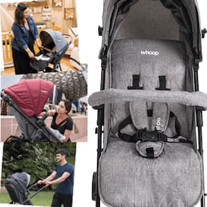 O modelo conta com capota retrátil com extensão e proteção solar UV FPS 50+, cinto de segurança de cinco pontos e descansa-braços. As rodas dianteiras giratórias de 5 polegadas facilitam as manobras, enquanto as rodas traseiras, também de 5 polegadas, possuem freio integrado. Cada componente foi projetado para oferecer estabilidade e conforto durante o passeio.