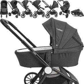 O Carrinho de Bebê Sunny está disponível nas versões Melange Preto e Melange Grafite.