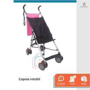 - Capota protege do sol; - Espaço para acessórios; - Freios traseiros; - Cinto segurança de 5 pontos; - Fechamento ultra fácil; - Tecido lavável.
