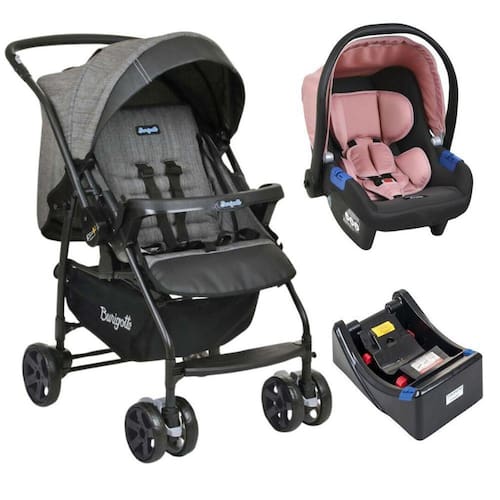 Conteúdo da Embalagem: 1 Carrinho De Bebê Passeio Rio K - Preto Mesclado - Burigotto 1 Bebê Conforto Touring X Rosa Cinza - Burigotto 1 Base para Bebê Conforto Touring X - Burigotto