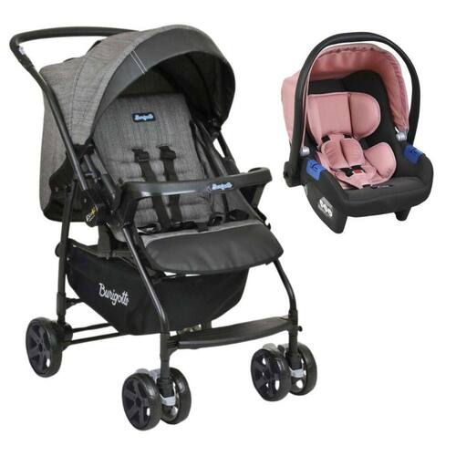 Conteúdo da Embalagem: 1 Carrinho De Bebê Passeio Rio K - Preto Mesclado - Burigotto 1 Bebê Conforto Touring X Rosa Cinza - Burigotto