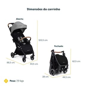 - Mesmo compacto, o carrinho oferece um cesto amplo para guardar o que precisar