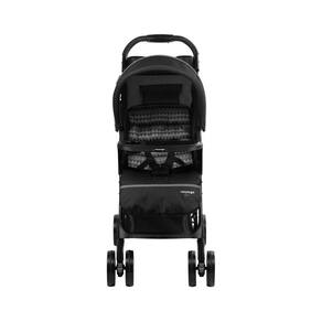 O cesto porta-objetos é espaçoso para levar os itens do bebê. Cinto de segurança de 5 pontos com ajuste de altura, rodas traseiras com freio centralizado e rodas duplas frontais com trava de movimento. Sua estrutura é leve e o fechamento envelope rápido pode ser feito com uma única mão, deixando a outra livre.