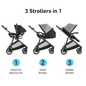 O carrinho Graco Modes Element Travel System é um produto 3 em 1 que oferece espaço suficiente para todos os itens essenciais do bebê. Ele pode ser facilmente convertido de porta assento de carro infantil para carrinho de bebê e, em seguida, para carrinho de criança, proporcionando um passeio versátil para bebês e crianças. O assento reversível do carrinho permite que o bebê ande de frente para os pais ou para a frente. O sistema de viagem inclui a cadeirinha infantil Graco SnugRide 35 Lite LX, que é voltada para trás e pode suportar até 15 kg. O carrinho também possui uma bandeja para os pais com porta copos e uma bandeja removível para crianças com porta copos, além de uma grande cesta de armazenamento para guardar itens essenciais para crianças e pais. O carrinho é feito de poliéster importado e pode ser facilmente dobrado para armazenamento.