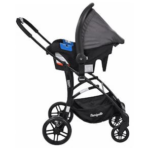 Possui assento reversível, encosto reclinável em múltiplas posições cesto, porta objetos, rodas dianteiras com giratórios, capota regulável e cinto de segurança de 5 pontos.