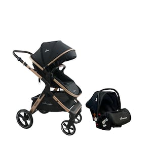 - Assento: Reversível frente/costas, reclinável em 3 posições, transforma-se em moisés - Cinto de segurança: 5 pontos - Capota: Retrátil com proteção solar UV50+ - Manopla e protetor frontal: Revestidos em couro ecológico - Rodas dianteiras: Giratórias com trava - Rodas traseiras: Com amortecimento e freio sincronizado - Fechamento: Compacto, acionável com apenas uma mão - Bandeja frontal: Removível, com porta-copos - Apoio para os pés: Regulável - Tecido: Lavável e removível