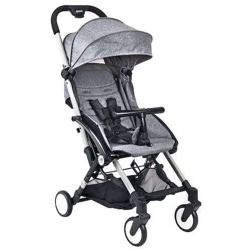 Para crianças recém-nascidas até 15 kg Encosto com múltiplas posições de regulagem Cesto porta-objetos Chassi em alumínio Capota regulável e com visor Cinto de segurança de 5 pontos Trava automática ao fechar 4 rodas de 5 polegadas Leve e extremamente compacto quando fechado Freio traseiro conjugado