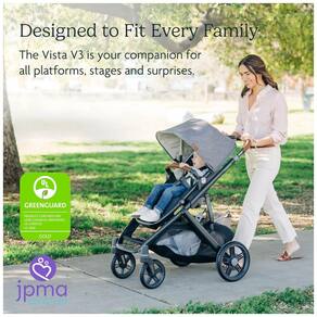 Com um design intuitivo e mais de 30 maneiras de personalizar seu passeio, o carrinho de bebê Vista V3 foi projetado para se adaptar facilmente a cada família em crescimento, do primeiro ao último filho. Começando como um carrinho de bebê simples, ele se transforma facilmente para acomodar até três crianças, oferecendo máxima portabilidade e conveniência. O Vista V3 proporciona um passeio premium em todas as estações. Possui um toldo UPF 50 extensível e repelente à água, cesta extra grande de fácil acesso, tecidos premium e detalhes em couro. Os pneus nunca furam para durabilidade e facilidade de locomoção em vários terrenos. Capaz de transportar até três crianças com acessórios adicionais. As funcionalidades incluem reclinação multiposição com uma mão, manopla ajustável, travas nas rodas dianteiras, sistema de arreios magnéticos, suspensão em todas as rodas e assento com conforto para todas as estações. Além disso, o carrinho é certificado GREENGUARD Gold e REACH, garantindo qualidade do ar e baixas emissões químicas. O Vista V3 é a solução ideal desde o nascimento até o crescimento das crianças, proporcionando conforto, segurança e estilo.