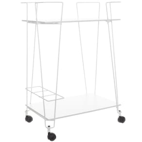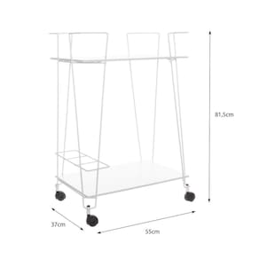 Carrinho de bebidas decorativo retangular com 2 andares e rodinhas, multiuso com estilo industrial com lateral em aço e prateleiras de madeira em MDP para sala de estar, sala de jantar, bares e adegas. Acabamento da Prateleira: Melamínico Acabamento dos Pés: Polipropileno Altura dos Pés: 4 Ambiente Principal: Sala de Jantar Bandeja: Não Possui Complexidade da Montagem: Baixa: pode ser montado por uma pessoa sozinha Cor: Branco Cor do Produto: Branco Escala de Brilho: Fosco Escala de Brilho da Prateleira: Semi-Brilho Itens Inclusos: 1 Carrinho, Manual de montagem e Kit de ferragens Manual de Montagem e Instalação: https://product-hub-prd.madeiramadeira.com.br/916827/documents/15f03682-f838-4f0d-bc02-b20277a955a2102020manual20de20montagem.pdf Material da Prateleira: MDP Material dos Pés: Polipropileno Material Principal: Aço Necessita Montagem: Sim Origem do Produto: Nacional Pés Reguláveis: Não Peso: 5.96 Peso Máximo por Prateleira: 5 Porta Rolhas/Tampinhas: Não Porta Taças: Não Possui Adega: Não Possui Espelho: Não Possui Gavetas: Não Possui Pés: 04 Possui Portas: Não Possui Prateleiras: 02 Possui Rodízio: Sim Possui Vidro: Não Recomendações de Uso, Manutenção e Limpeza: Limpar com pano umedecido Rodízio com Trava: Não Sapatas Niveladoras: Não Sistema de Montagem: Parafuso cabeça panela phillips Suporta Até (kg): 10