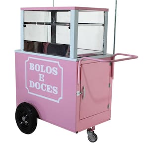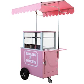 Com este prático carrinho você poderá iniciar um negócio vendendo deliciosos bolos e doces em locais de grande circulação de pessoas como festas, eventos, praças, shoppings, feiras, parque de diversões, etc. Descrição do Produto Modelo: 42531 Gabinete em chapa galvanizada e com adesivo. Mesa superior em aço inoxidável chassi super reforçado em tubo metalão de 25x25 mm Rodas pneumática 325 x 8 com rolamento. Rodizio giratório Este Carrinho é Térmico, e contém a placas de Gelox que deve ser congeladas e colocada no carrinho. Acompanha 8 Placas de Gelox Gabinete interno para utensílios MEDIDAS DO PRODUTO Altura até o toldo: 2,00m Altura: 140cm | Largura: 56cm | Comprimento: 1,00m Peso: 60 kg | Garantia: 3 meses Embalagens: 1 caixa medindo 1.00 mt x 0,70 cm x 1.00 mt