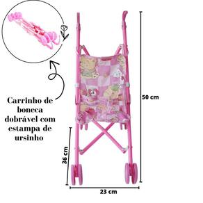 Carrinho De Boneca Infantil De Passeio Plástico Rosa 50cm