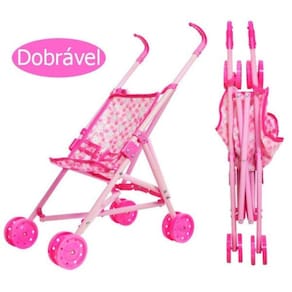 Carrinho de boneca infantil dobrável rosa menina bebê barato Carrinho para boneca dobrável tipo guarda-chuva estrutura em plástico com cesto em tecido. A boneca não acompanha o carrinho desenho apenas para ilustrar. Agora ficou mais prático brincar em qualquer lugar carrinho fácil de guardar e transportar. Características: composição: polímeros plásticos /metal fibras dimensão: 55cm estampa: varia de acordo com o cor: rosa Inmetro: 300/2002 Marca: Não Informado Ean: 7898260901686