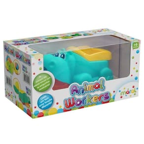 Hipopótamo com função caçamba e que tomba vem com rodinha pra criança puxar com cordinha coleção com fante rino e jaca.