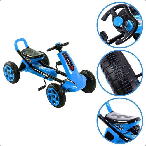 Carrinho de Brinquedo com Pedal até 50Kg Azul Kart Uni Toys