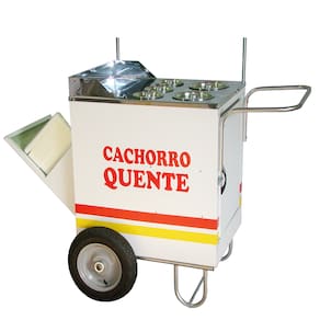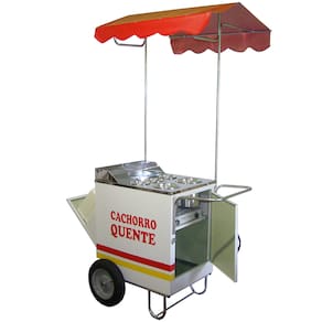Modelo: 4212Gabinete em chapa Com Pintura Epóxi. Mesa superior em aço inoxidável. Rodas pneumática 325 x 8, com rolamento. Adesivo nas cores vermelho e amarelo. Acessórios que acompanham este produto:2 Panela para cozimento salsichas1 Toldo desmontável 1.20 x 1.00 mt3 cubas para molhos diversos1 fogão de 2 bocas baixa pressão1 caixa térmica 28 litros tipo "isopor" para bebidas. Dimensões do Produto:Comprimento0,70cmAltura até a mesa0,92cmAltura até o toldo2.00mtLargura gabinete0,56cmLargura c/ rodas0,70cm° Peso aprox. do produto40kgEmbalagens:° Dimensões(L x A x P):0,75cmx 1.00mt x 0,75cm