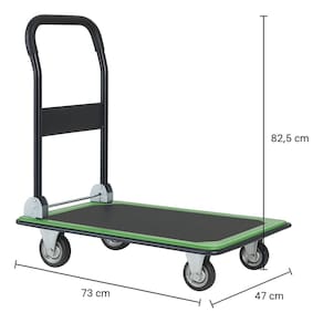 Praticidade, segurança e resistência em um só produto! O carrinho de carga plataforma suporta até 150 kg, ideal para transportar objetos volumosos e pesados com muito mais conforto e estabilidade.Diferenciais do Produto:Freio de segurança: evita movimentações indesejadas, reduzindo riscos de quedas e acidentes.Dobrável: ocupa menos espaço e pode ser facilmente guardado após o uso.Conforto no manuseio: punhos e alças emborrachadas que reduzem o contato direto com o aço.Base ampla: 73 cm de comprimento x 47 cm de largura, facilitando o transporte de volumes maiores.Resistência: estrutura em ferro com base reforçada em borracha e ferro fundido.Mobilidade garantida: 4 rodas maciças em borracha e polipropileno, com diâmetro de 10 cmEspecificações Técnicas:Tipo: Carrinho de carga plataforma dobrávelCapacidade de peso: 150 kg (não exceder capacidade recomendada)Material do carrinho: AçoMaterial da base: Borracha + ferro fundidoMaterial das rodas: Borracha e polipropilenoCor: Preto e verdeAltura: 82,5 cmLargura: 47 cmComprimento: 73 cmDiâmetro das rodas: 10 cmQuantidade de rodas: 4 Marca: Não Informado Ean: 7898781750046