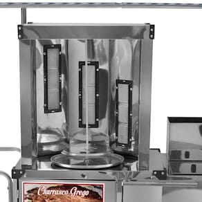 Esse Carrinho de Ambulante é equipado com 1 espeto manual e 3 infra vermelhos deixando seu assado mais uniforme, contém também reservatório térmico aonde é possível manter sucos e bebidas para acrescentar na sua venda sendo esse como um dos melhores do mercado!