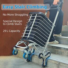 - Carrinho de escalada: com 8 rodas, 3 de cada lado da roda traseira e uma roda giratória de 360° em cada roda dianteira, este carrinho de compras foi projetado para subir escadas sem esforço. O carrinho de compras pode ser facilmente conduzido em cascalho, paralelepípedos, montanha, terra e estradas arenosas. Além disso, o carrinho de compras para escadas tem freios nas duas rodas dianteiras.