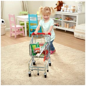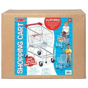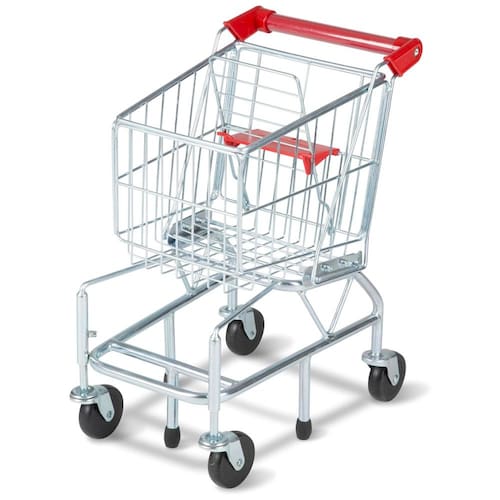 O carrinho de compras de brinquedos Melissa And Doug possui uma estrutura de metal resistente e é ideal para crianças a partir de 3 anos. Com uma construção em aço de alta resistência. Ele é equipado com rodas de segurança frontais com mola que giram 360 graus, permitindo que ele role facilmente em várias superfícies dentro de casa. Além disso, possui alças easygrip e um assento rebatível para uma boneca ou um passageiro de pelúcia fazer compras de mentira. Este carrinho de compras de brinquedo funcionará em calçadas ou ruas residenciais. É necessário montagem de adulto.