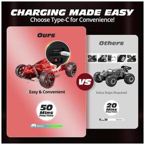 Velocidade incrível: Tamanho grande em escala 1:18, pode atingir uma velocidade máxima de 20 km, h, você pode sentir a velocidade poderosa e incrível. Bateria de grande capacidade: 2 baterias recarregáveis de 3,6 V 700 mAh para carro, podem ser reproduzidas por cerca de 30 40 minutos cada bateria. Material de alta qualidade: Plástico atóxico e elementos eletrônicos super flexíveis, tornam o carro mais robusto e resistente a colisões. Fácil de controlar: Equipado com controlador de 2,4 GHz, facilita a operação. Dois ou mais veículos RC podem competir juntos sem confusão remota. Presente perfeito para crianças: Se algo der errado com seu carro RC, ou você decidir que não é para você, estaremos sempre com você. Adicione o carrinho agora e dê uma surpresa aos seus filhos.