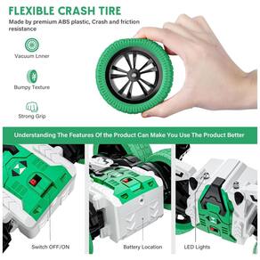 O Carro de Controle Remoto Rcabcar realiza acrobacias de 360º em ambos os lados, permitindo corridas cheias de drifts e flips emocionantes. Com efeitos luminosos incríveis, este carro de acrobacias gira como um ciclone maluco. Com controle remoto, você pode direcionar o carro em qualquer direção. O controle anti-interferência de 2,4Ghz permite corridas com vários carros ao mesmo tempo. Equipado com motores elétricos potentes, pneus de borracha antiderrapantes e construção resistente a impactos, este carro é adequado para diversos terrenos. Um presente ideal para crianças de 3 a 12 anos, proporcionando momentos de diversão em família e alegria no controle total.