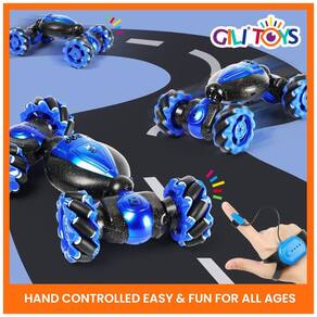 Controladores duplos e anti interferência O mais recente carro de acrobacias de 2021 está equipado com pneus Mecanum totalmente direcionais, direção flexível e controlador de pulseira de bônus. Três modos de controle de rotina, interação, fuga, bem como várias habilidades de acrobacias mantêm as crianças gritando e ocupadas jogando por horas. 2,4 GHz garante uma longa distância de emparelhamento dentro de 100 pés e garante a condução múltipla das crianças sem interferência. Ótima ideia de presente de aniversário e Natal para meninos de 8 a 12 anos. Operação da pulseira Usar e balançar o relógio para controlar os carros se movendo para frente e para trás, derivando lateralmente e girando em 360. Uma série de operações de acrobacias incríveis capacita as crianças com poderes mágicos como se estivessem empunhando varinhas mágicas. fizemos vídeos e instruções elétricas especialmente na página de detalhes para uso e download. Este carro monstro azul ajuda seus filhos a se afastarem do produto elétrico, que é uma ótima ferramenta para as crianças promoverem a coordenação olho mão e o senso de equilíbrio