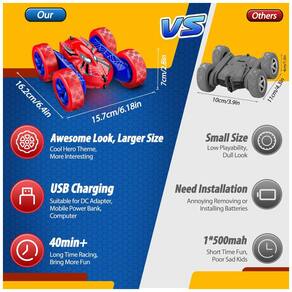 O nosso carrinho de controle remoto é incrível! Com tração nas 4 rodas, movimentos para frente e para trás, curvas para esquerda e direita e rotação 360°, permite drifts completos. Sua função de dupla face facilita a superação de obstáculos, trazendo velocidade e emoção para a experiência de pilotagem do seu filho. Equipado com bateria de 900mAh e cabo de carregamento USB, nosso carrinho funciona por até 50 minutos com uma única carga. Com duplo motor e velocidade máxima de 15KMH, oferece excelente capacidade de escalada. Sem interferências, graças ao controle remoto anti-interferência de 2.4Ghz, permitindo corridas multiplayer sem interrupções. Resistente, com pneus de borracha anti-colisão e função de absorção de choque, é ideal para uso em diversos terrenos. O presente perfeito para entusiastas de corrida, tornando-se o presente de aniversário ou feriado ideal para seu filho.