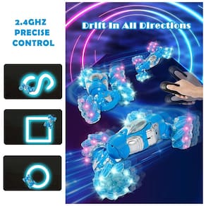 O Monstro RC com motores de 4 rodas BEMITON é um carro acrobático que pode ser controlado remotamente e alternar livremente entre os modos onroad e offroad. Seus pneus de tração de rolo possuem resistência a choques e deslizamento, permitindo que o carro lide com qualquer terreno, como areia, grama e pedras, sem ser facilmente danificado. O controle remoto possui um sensor de gravidade 2 em 1, que permite alternar entre o controle remoto manual e o controle com sensor de gravidade por gesto manual com apenas um clique. O sistema de controle de 2,4 GHz possibilita um controle remoto preciso, permitindo que o carro realize rotações de 360 graus, tombamentos de dupla face, direção lateral e desvios em todas as direções. Além disso, o carro possui impressionantes efeitos de iluminação elétrica e música, proporcionando uma maravilhosa experiência de operação e efeitos visuais para as crianças. O carro de deriva RC também possui um carregamento conveniente, com bateria de lítio recarregável durável integrada no corpo de peça única, que pode ser conectado diretamente ao carregador USB sem precisar abrir o carro. Este carro é um presente perfeito para crianças, sendo um sonho de aniversário, Natal, Halloween, Dia das Crianças, volta às aulas, presente para meninos e meninas.