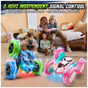 O sistema de rádio 2,4GHz oferece controle estável em maiores distâncias e permite que vários carrinhos sejam utilizados simultaneamente sem interferência entre sinais. As rodas com pneus de alta aderência e absorção de impactos mantêm a estabilidade em superfícies como piso interno, carpetes, grama baixa, areia firme e pavimento, enquanto os LEDs integrados nas rodas melhoram a visibilidade em locais com menor luminosidade.??