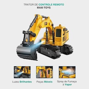Carrinho de Controle Remoto Trator Bateria Recarregável Solta Fumaça Maxi Toys
