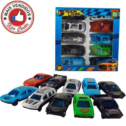 Carrinho de Corrida Roda Livre 10 Peças Colo Carrinho de Corrida Roda Livre. Ideal para a diversão da criança. Contém 10 peças. Embalagem: 16,5Cm X 16,5Cm / Carro: 6,5Cm X 2,7Cm\nEspecificações:\nMarca : ARK\nTipo de material : Plástico\nCores ou Estampa :\nDimensões do Produto : 2 X 6,5 X 2 CM\nDimensões da Embalagem : 16,5 X 16,5 X 2 CM\nPeso Bruto (Gramas) : 0.084