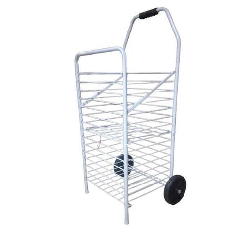 Carrinho de feira branco com divisória dobrável reforçado Carrinho de feira branco com divisória dobrável reforçado Lindo carrinho de feira reforçado com divisória Pintura Epoxi cor Branca, muito bonito e com área de carga maior que os comuns.Com Divisória e dobrável. Medidas:- Altura: 94cm- Largura: 44cm.- Profundidade: 38cm. Área de carga:- Altura: 56cm.- Largura: 33cm.- Profundidade: 30,5cm. Peso: 3,60kg. Produto com garantia.